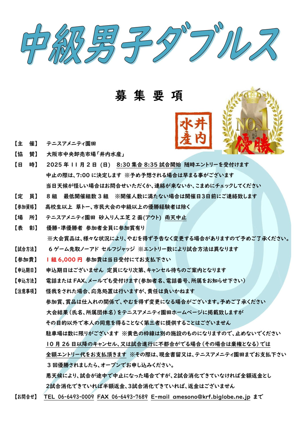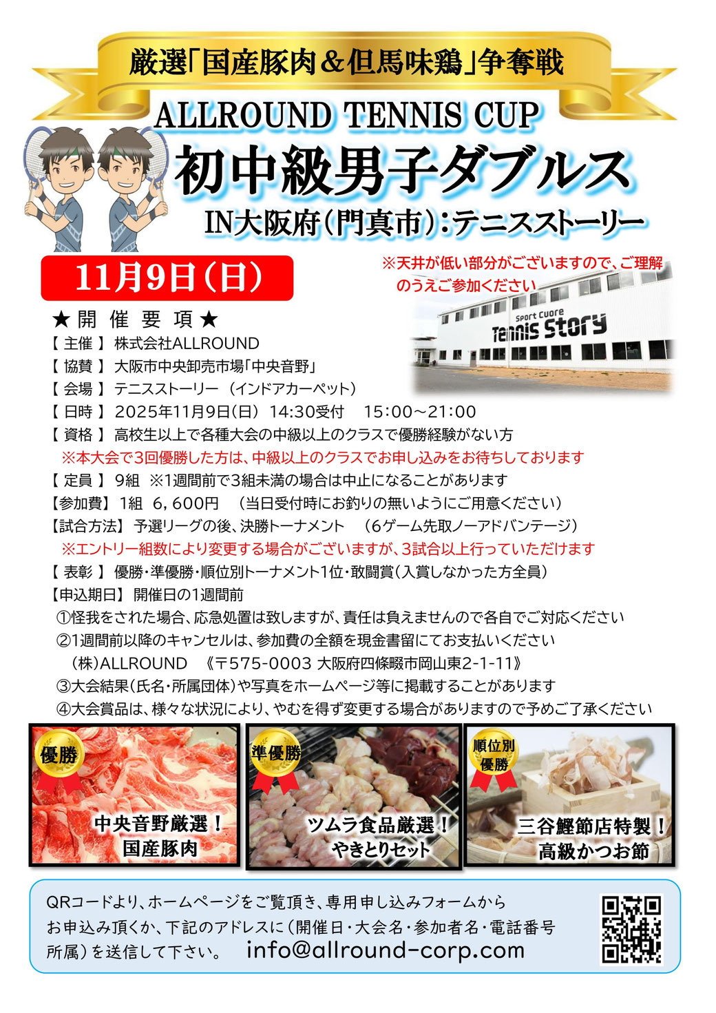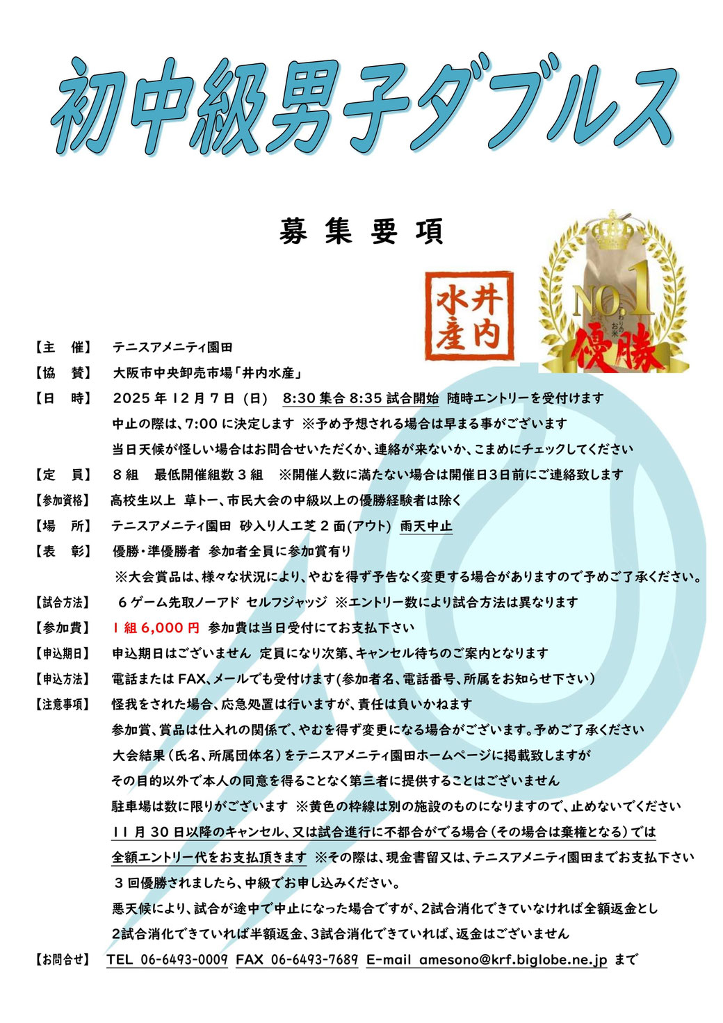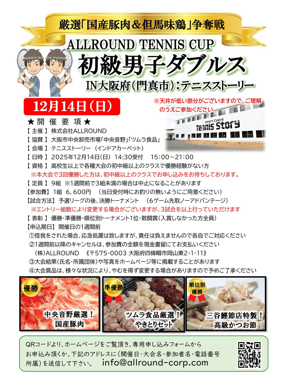 初心者からオープンの方を対象に開催している男子ダブルスの大会です。初心者の方にも気軽にご参加頂けるよう、グレードごとに分けステップアップしながら楽しんで頂ける大会です。皆様のご参加お待ちしております。